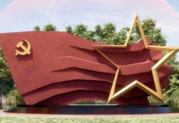 • 紅星耀旗 —— 不銹鋼與石雕融合的紅色文化景觀雕塑精神地標